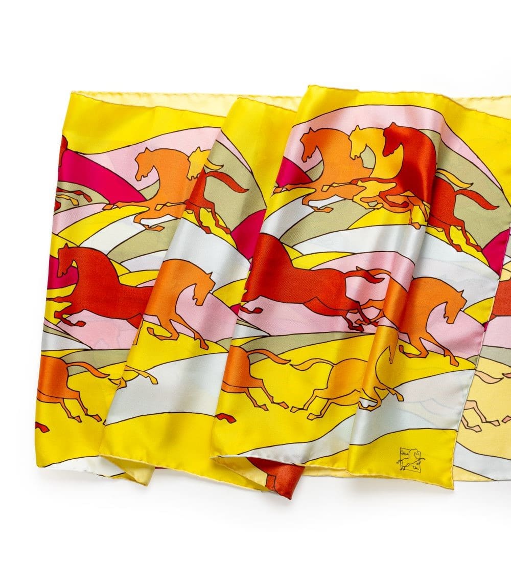 Douce, avec un très joli drapé, cette écharpe fait mouche chaque fois que je la porte grâce à ses couleurs vives et ses jolis chevaux qui viennent rehausser chaque tenue .. Je l’aime beaucoup.